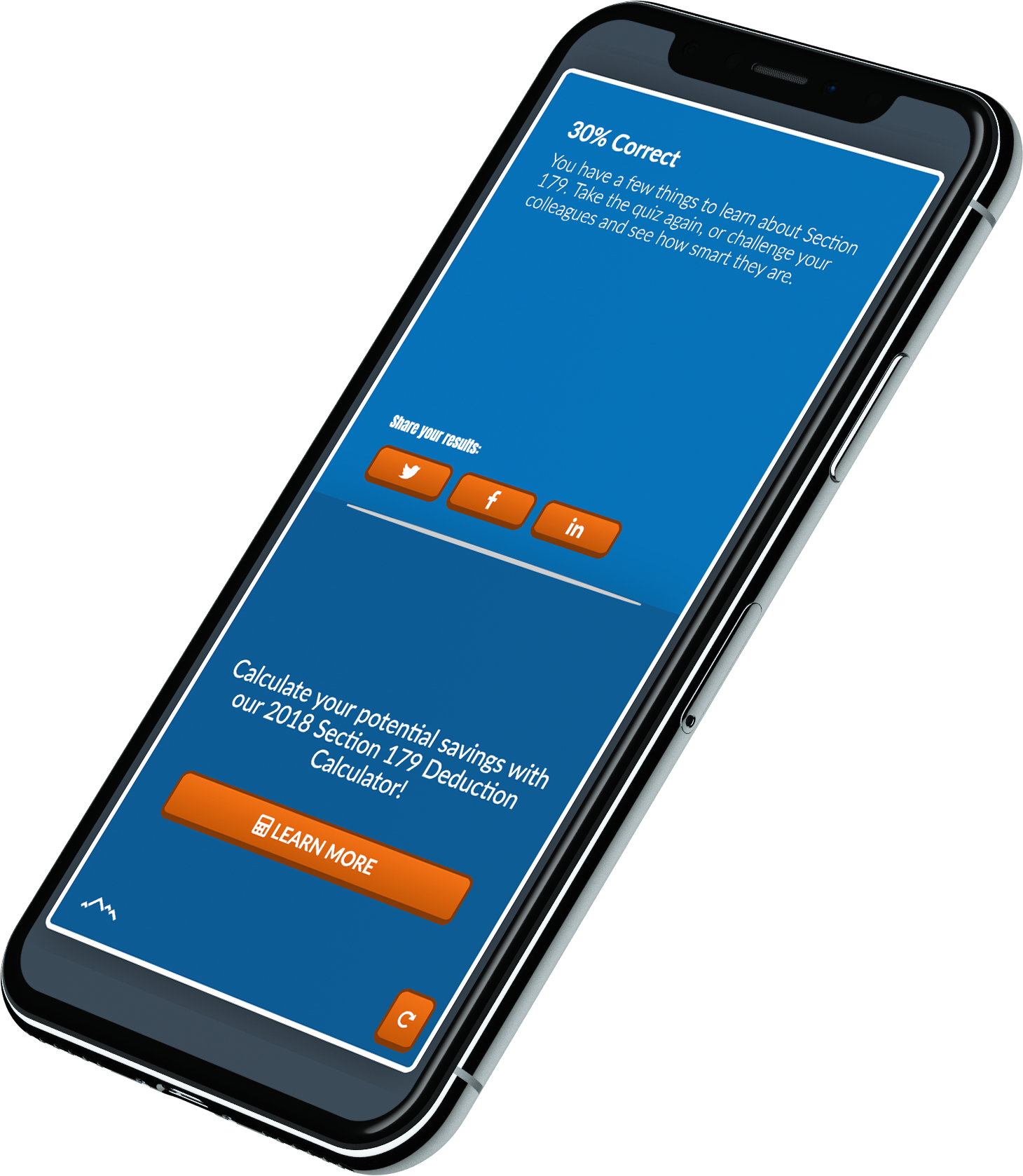 The client wanted to bring impressions to their Section 179 Calculator, hosted on their website. To implement this, a completion screen featured a quick message, attracting the user to click a CTA button leading to their internal tool.